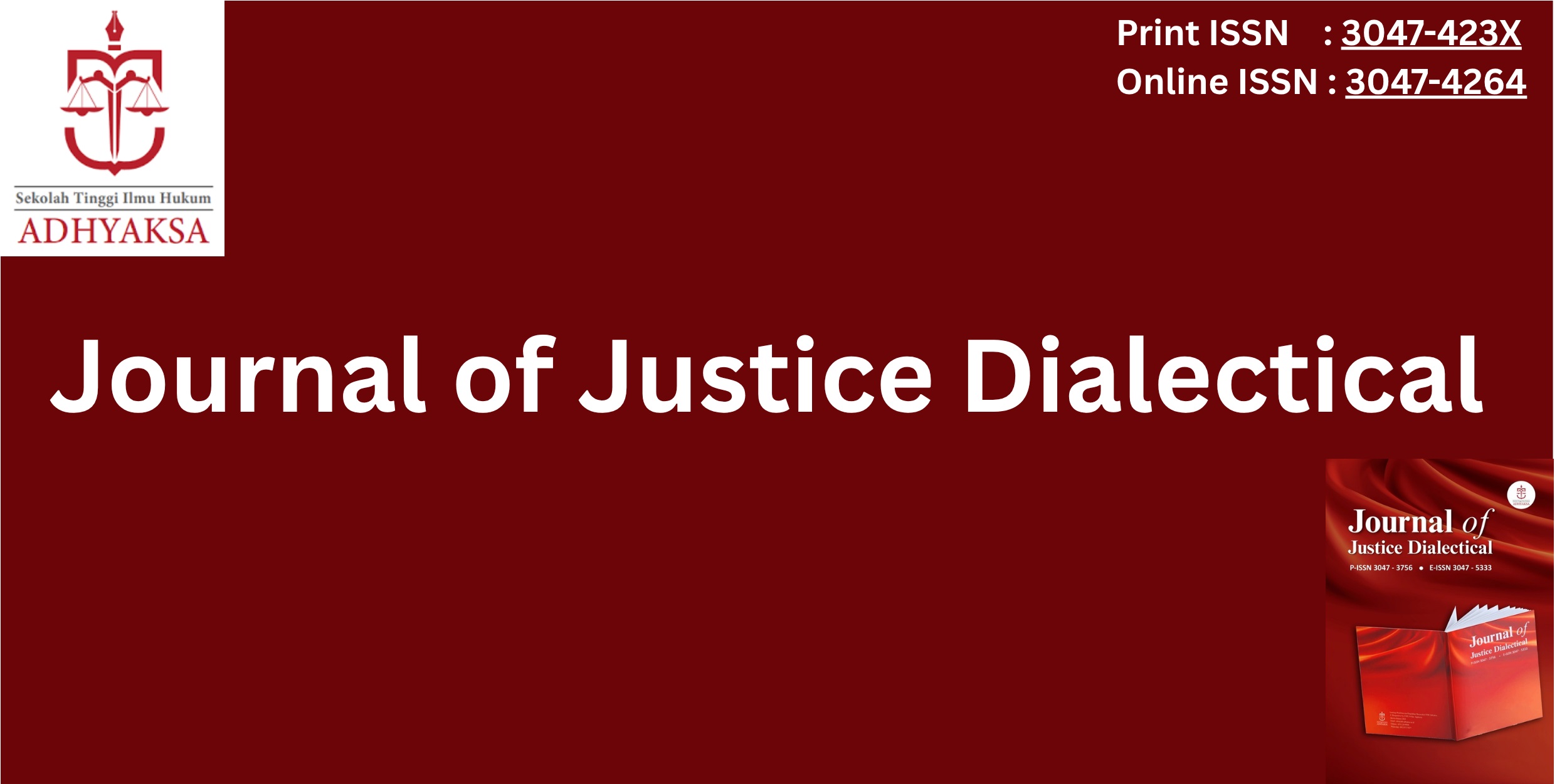 The Journal of Justice Dialectical (JJD) is a peer-reviewed periodical that provides a dynamic platform for the dissemination of ideas on criminal law and criminal justice system. In our contemporary globalized world, it is almost impossible to isolate developments in the law in one jurisdiction or society from another. At the same time, theoretically informed papers on a wide range of fields linked to criminological research and analysis. JJD is an open-access, peer-reviewed, and refereed international journal published by Sekolah Tinggi Ilmu Hukum Adhyaksa. The scope of JJD includes both studies of crime and interpretations of forms and dimensions of criminal law; analyses of criminological debates and contested theoretical frameworks of criminal justice system analysis; criminal justice and penal policy and practices; policing policies and policing forms and practices; criminal law and practice from a socio-legal perspective, election Crime, economic crime and juvenile crime.